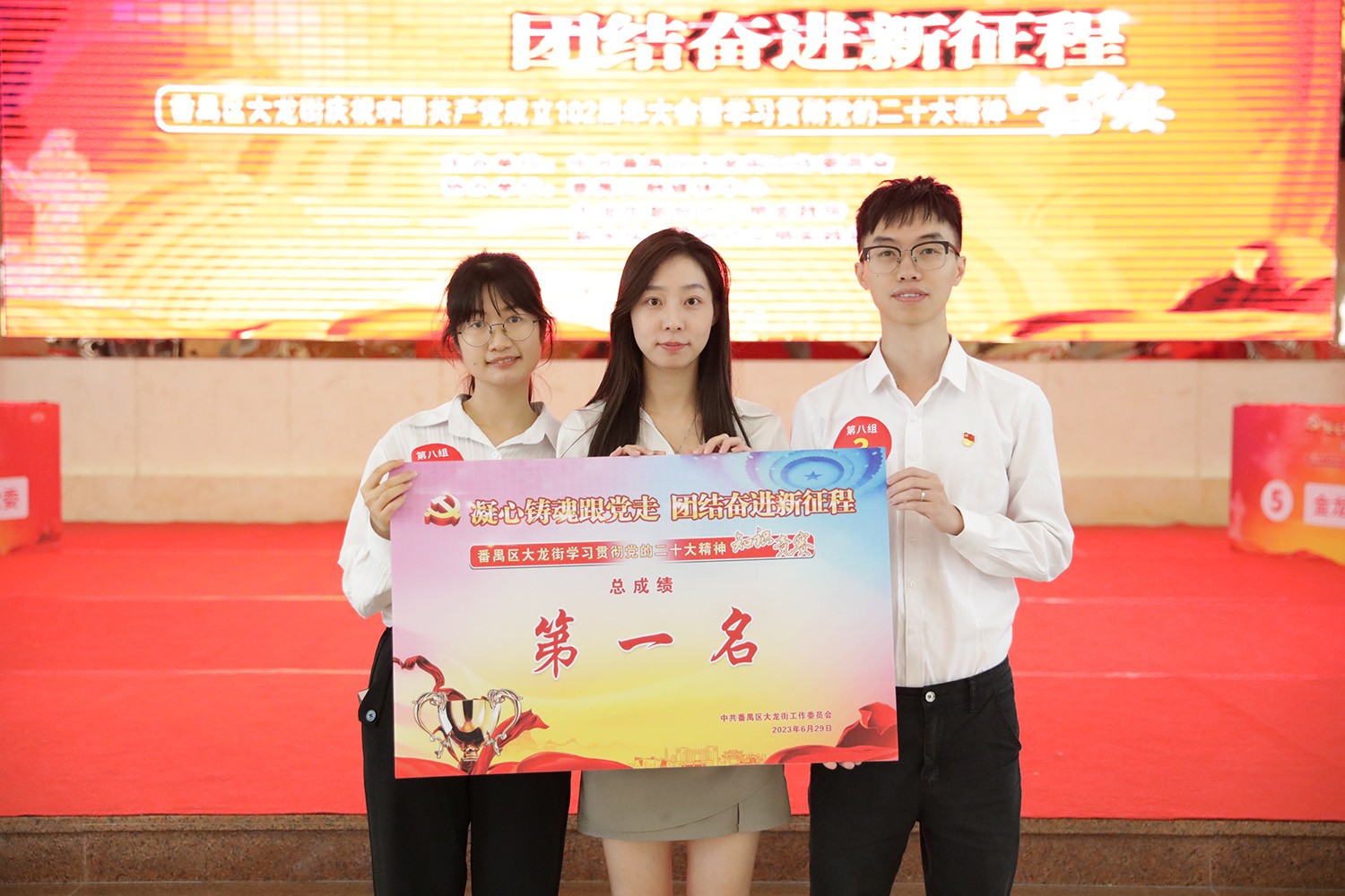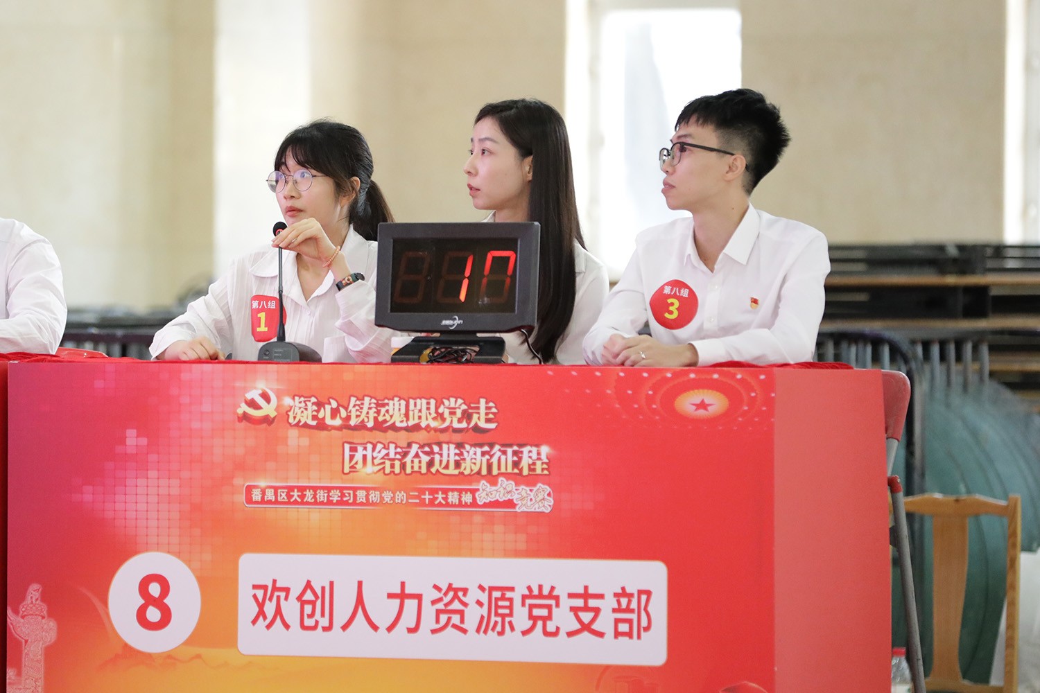 為慶祝建黨102周年,6月29日下午,中共番禺區(qū)大龍街工作委員會(huì)聯(lián)合番禺區(qū)融媒體中心于新水坑文化中心舉辦“學(xué)習(xí)貫徹黨的二十大精神知識(shí)競(jìng)賽”活動(dòng)。經(jīng)過激烈角逐,歡創(chuàng)集團(tuán)黨支部代表隊(duì)勇奪桂冠!