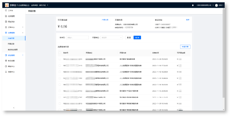 薪酬易為企業(yè)客戶指定專屬賬戶,余額流水實(shí)時(shí)監(jiān)控,支持電子回單、發(fā)票憑證、在線申請(qǐng)一鍵直郵