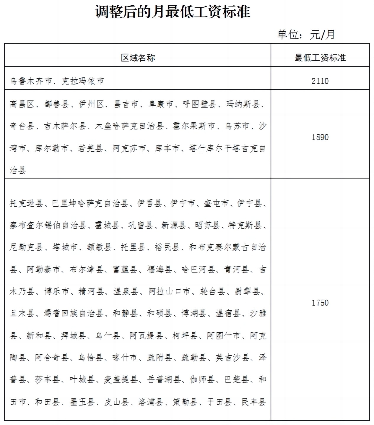 新疆:擬調(diào)整最低工資標準