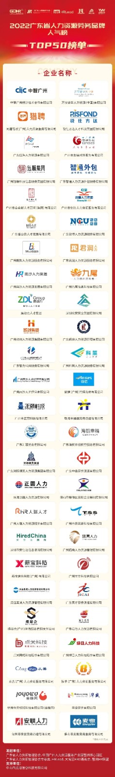 2022廣東省人力資源勞務(wù)品牌人氣榜榜單公布