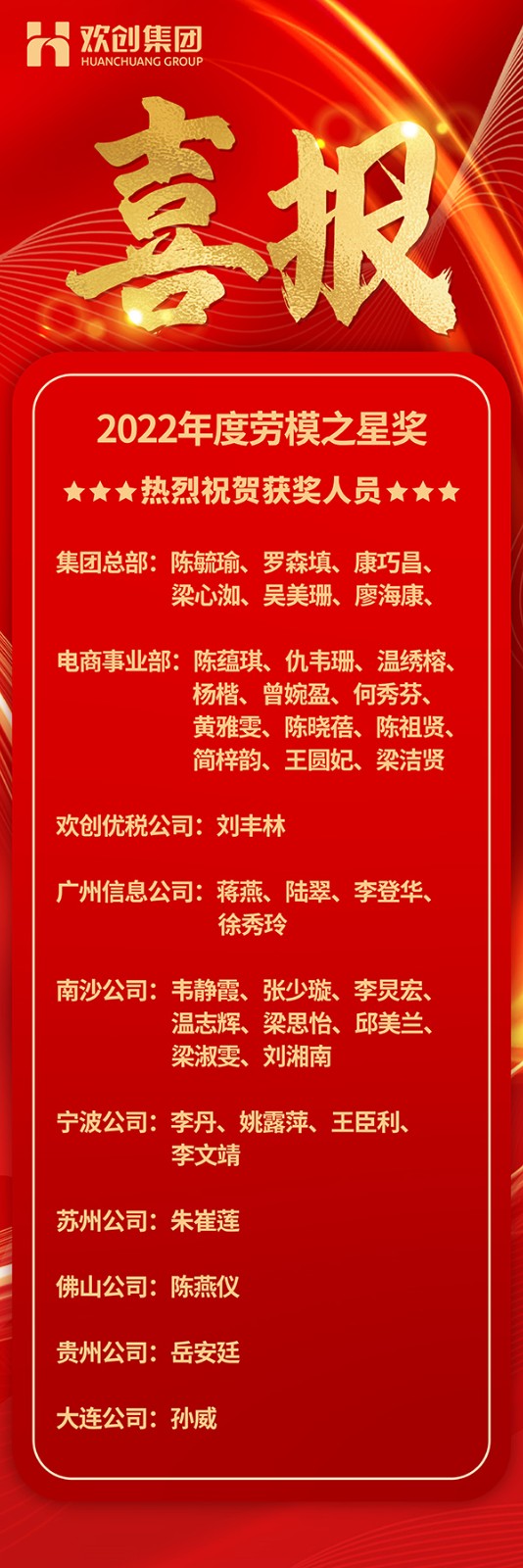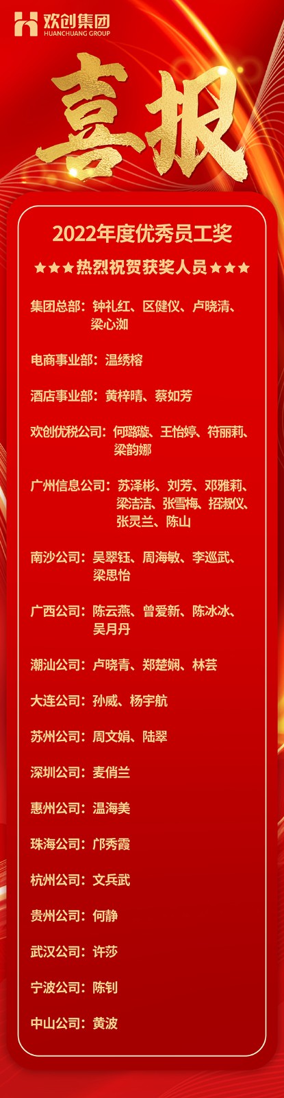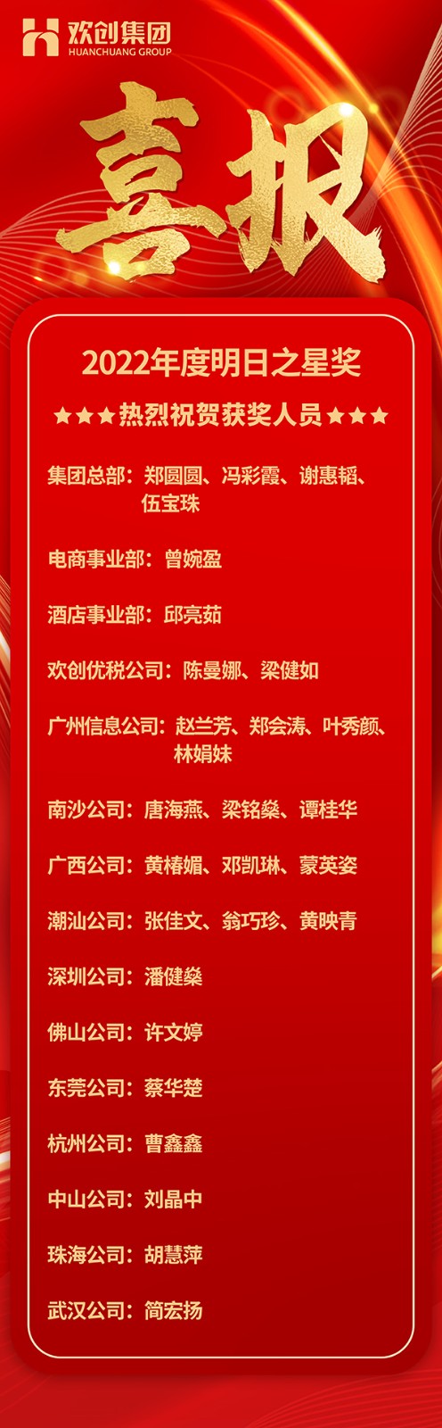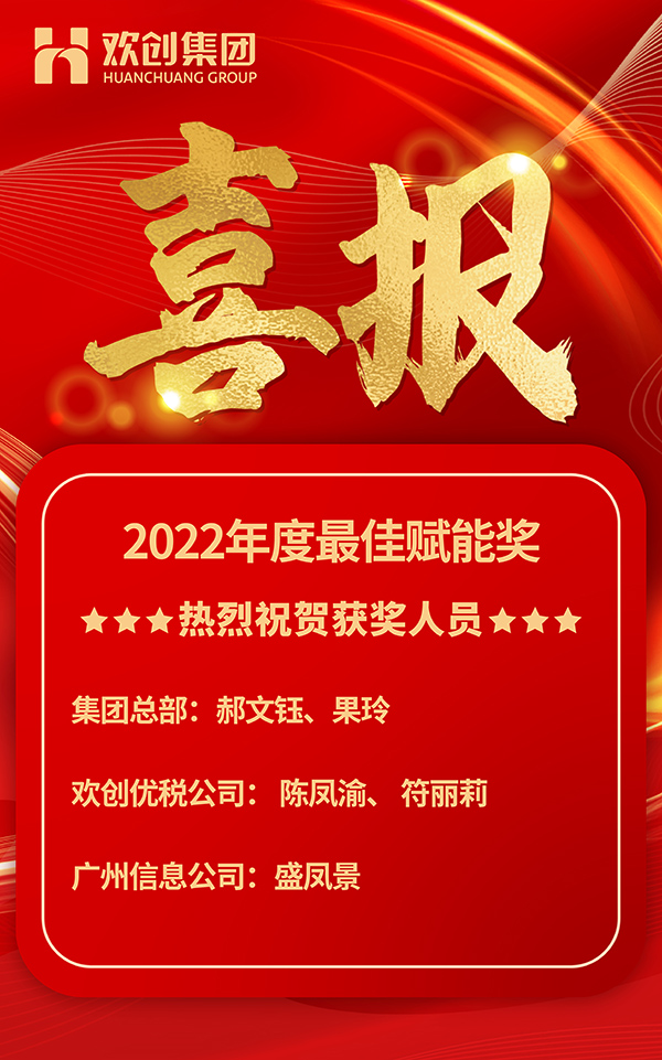 2022年度歡創(chuàng)集團(tuán)評(píng)優(yōu)結(jié)果喜報(bào)