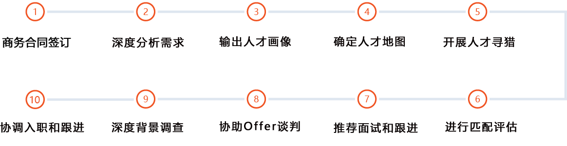 確認(rèn)合作當(dāng)天即開(kāi)展尋獵,根據(jù)人才地圖多渠道多維度尋獵。