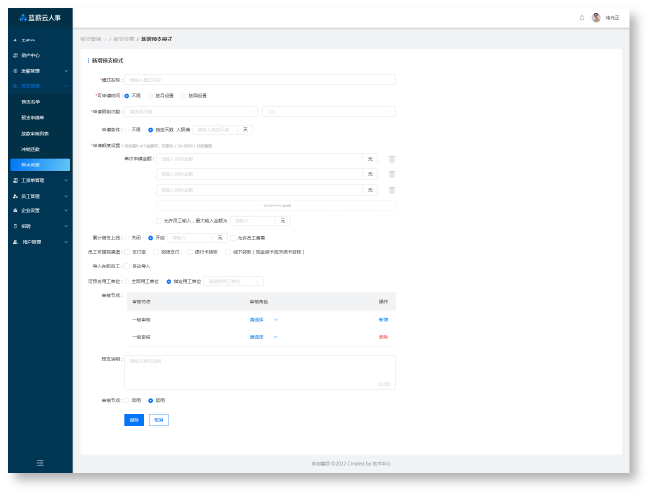 · 對該員工是否能申請預支進行設置